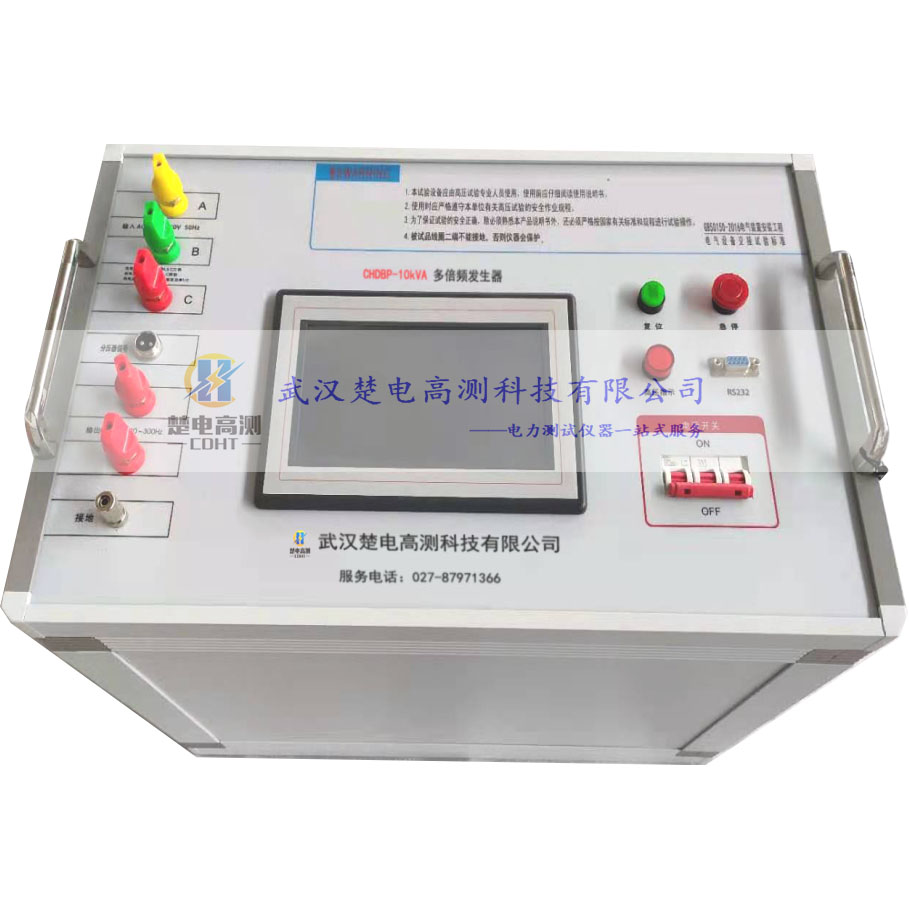 CHDBP多倍频发生器采用微机控制,结合先进的变频及高速采样技术设计制造,比传统的三倍频发生器效率高,输出电压稳定,测量精度高,重复性好,并且可以实现自动升压、升压至设定值后自动计时、计时完成后自动降压的功能,操作极其简单。仪器采用背光式大屏幕液晶显示,全中文操作界面,带实时时钟和微型打印机。仪器采用一体化结构,重量轻,便于携带。